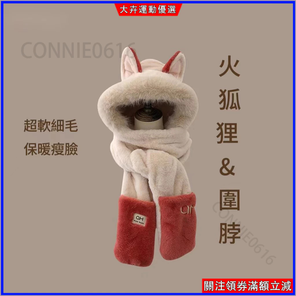 5分鐘前冬季爆款#火狐狸圍巾 帽子一體 保暖 圍脖 日韓 可愛 女生 百搭 情人節 春節 禮物 生日禮物 交換禮物 - 【今日限定】體驗一入組$799