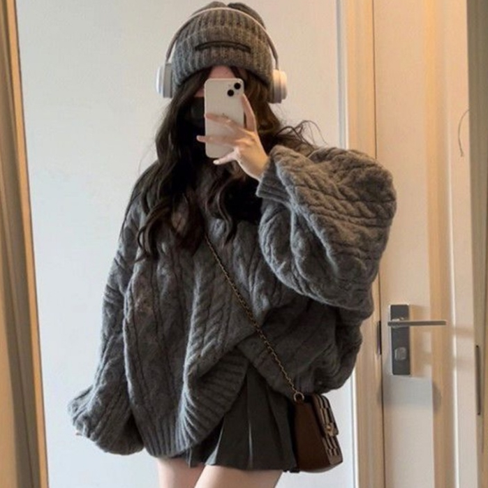 7分鐘前冬季爆款//台灣發貨+熱賣針織上衣 韓版法式V領麻花毛衣//加厚寬鬆慵懶風軟糯針織衫秋冬上衣 寬鬆上衣 毛毛外套 - 閨蜜團購【二件】NT$1298