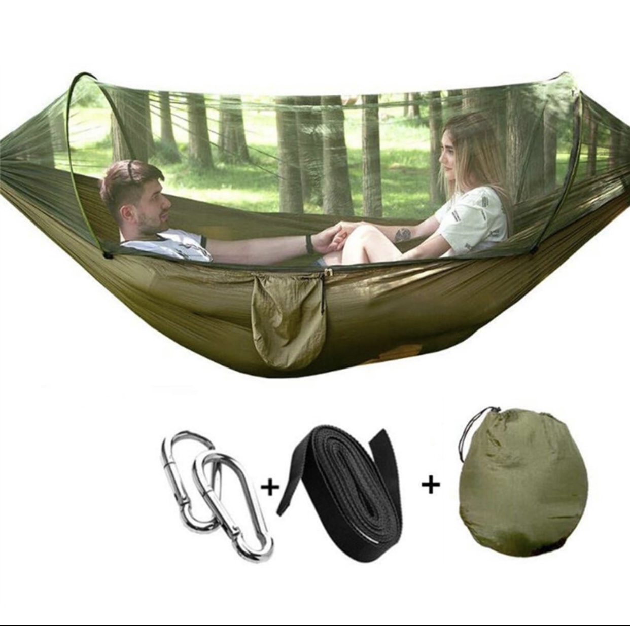 半小時前全自動速開戶外帶蚊帳吊床 - 【創意嘗鮮】承重700公斤 速開蚊帳吊床【無蚊帳+三米綁繩+8號扣】/1入組NT$998