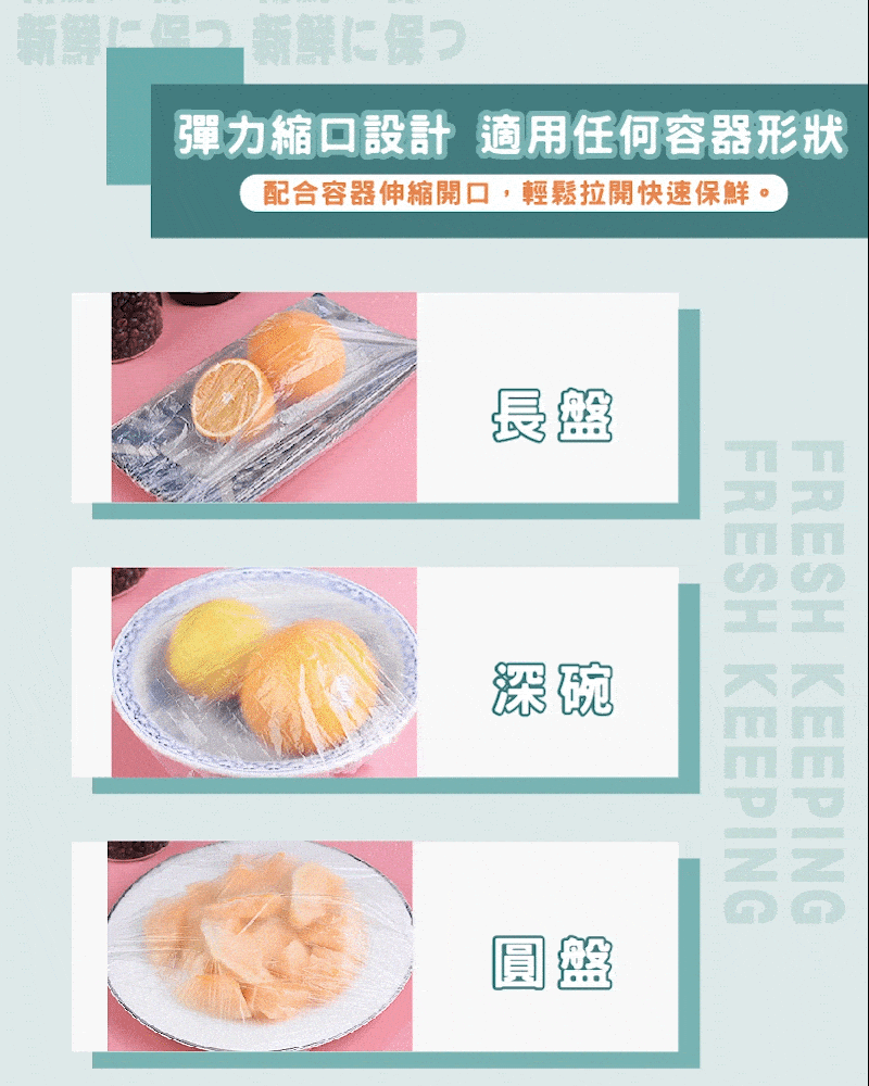 半小時前新款保鮮膜套 食品級材質,彈力縮口,任何大小、形狀都能輕鬆套上,保鮮不跑味,方便快速,乾淨衛生,廚房必備好物! - 今日限定:八入組(800個)NT$1099(96%客戶的選擇)再贈送驚喜禮品一份!-NT$1099