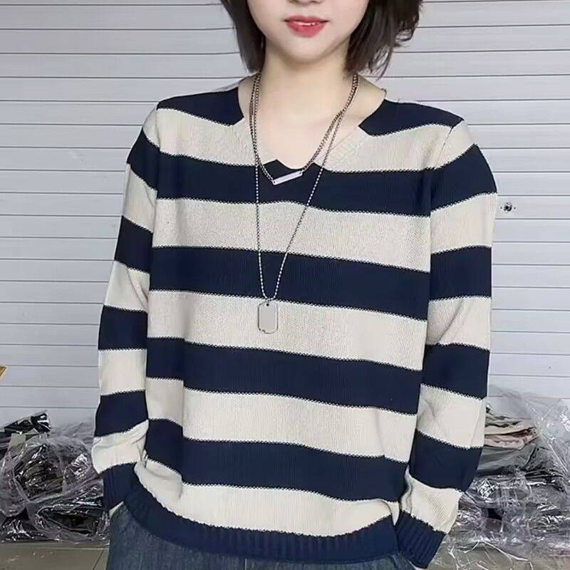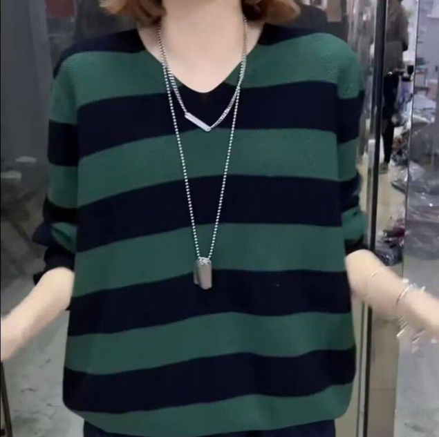 11分鐘前2024新款秋冬季寬鬆條紋針織毛衣女士打底衫 - 【團購優惠】任選4件 僅需NT$1598